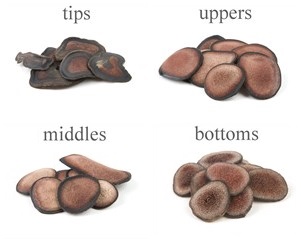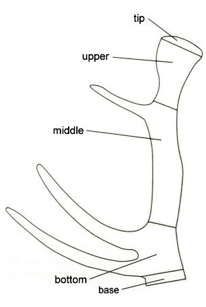 Deer velvet antler can be divided into five segments: tips, uppers, middles, bottoms and bases. The top part, usually the last two inches of each branch of an antler, is called the tip. The segment from the beginning of the tip to the forks of the antler is called the upper. The segment between the upper and lower forks is called the middle. The segment between the lower forks and the base is called the bottom. The base is the last few inches of antler.