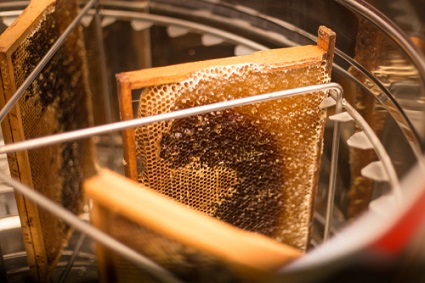 liquid flowing, removing the wax seal on the honeycomb, then spinning the