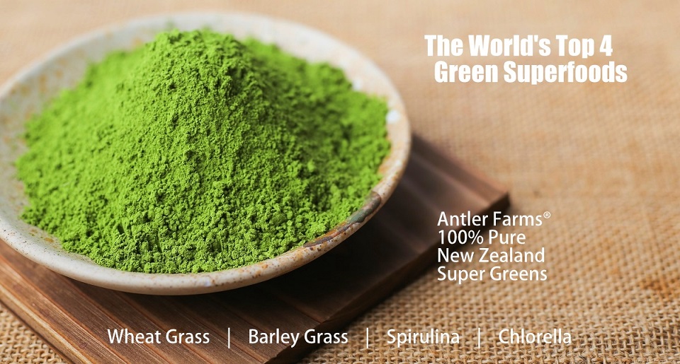Antler Farms® New Zealand Super Greens contains a perfectly proportioned organic blend of world's most nutrient dense superfoods: wheat grass, barley grass, spirulina and chlorella.